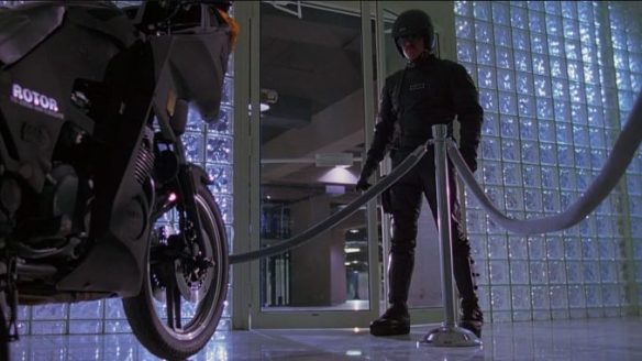 The film was produced, directed, and written by Cullen Blaine, whose most notable credit before this was directing 13 episodes of The Get Along Gang. Budd Lewis produced the first screenplay for it, but he claims that Blaine then removed all the humour and bits that were too expensive to shoot. The main star of it is Richard Gesswein as Dr J. Barrett C. Coldyron, and he is so Texan, he probably pees BBQ sauce and bullets. As a whole, the film is aggressively Texan, or at least a bold, free-spirited, caricature of Texas bravado and machismo. When it works it means we get accents, cityscapes, and a sense of the wide-open that go beyond the recycled L.A. and New York cyberpunk clichés. Sadly, the other side of that coin is the kind of 80’s masculinity that stinks of hi-tech Lynx deodorant, casual racism & sexism, along with a flagrant disregard for effete concerns such as pacing, emotions, and characterisation.