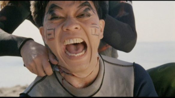 But wait; there’s more! There is also a bit of a surf movie going on, as all of the gang cast can actually surf. It’s not the most incredible footage nor does it have the greatest moves you can see, but the tunes are thumping and there is a joyful authenticity to watching realistic surfing going on. In fact the whole soundtrack by Jon McCallum is pretty decent, mixing synth horror with surf and touches of metal. There are also a number of shots through the movie which stand out as a cut above the rest, with a single take long shot of Adolph and Mengele yelling at each other in an abandoned hanger being especially evocative of how little their kingdom actually holds. A few of the sequences of the gangs hustling and ripping each other off are also quite fun and well performed, in a low-life living a low-life manner.