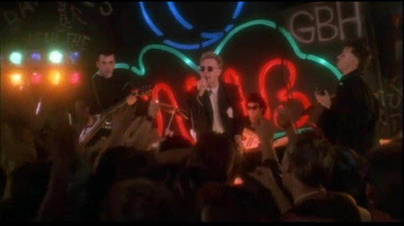 The sequence is a replay of the main tune, again, mixing the concert performance with highlights from the film we just saw. Not a terrible idea, but the producer clearly paid a lot to have Sybil Danning take her top off on camera and they are determined to get their money’s worth. Truth be told, she has quite nice breasts and, if offered them and were I available to so indulge, I’m sure I would have a grand time with them. But after seeing the exact same sequence of them being exposed 17 times in 3 minutes my mind moves from “oh, those are quite nice breasts” to “I wonder how they got that top to come off so neatly. Was it special hemming or just a specific cut? I’ll watch closely next time that happens…”