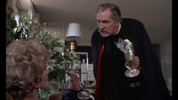 If you want to go into it with just a strong recommendation, then stop reading now. If you want to go in which the main hook from the trailer, then read the rest of this paragraph where I tell you that one of the big features (other than a series of entertaining murders) is Vincent Price doing Shakespeare. Is it any good? I don’t know, I’m not the kind of person who can tell you that as The Bard only ever did one slasher (McBeth) and one Sci-fi (The Tempest). What I can tell you is that I think it’s great and that Vincent does it with character-appropriate levels of style and charm, showing an insight into a world where classical theatre’s gain was genre movies loss.