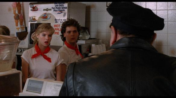 The film starts as it means to go on; throwing around some creepy monster and dream effects and hoping that it all being about someone on the telly trying to control people’s minds will cover up its shortcomings. The person doing the controlling is Dr. Anthony Blakely, played by the always sinister David Gale. The person who’ll be resisting that control for our viewing pleasure is Jim (Jim Majelewski), and he’s an absolute arse who thanks’ he’s the Rebel Without A Cause. He has a girlfriend called Janet (Cynthia Preston) and for the life of me I can’t work out what she did wrong to be with him.