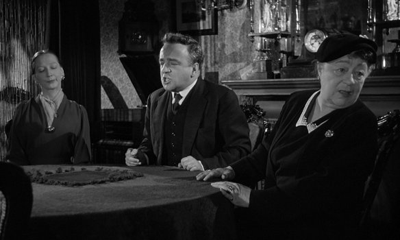 The central story is that of John Holden (Dana Andrews) trying to expose Doctor Not-Alister-Crowly-For-Legal-Reasons (Niall MacGinnis) for being a fraud. He also wants to bust the Doctor for a series of murders and being a creepy clown at children’s parties, but mostly it’s so he can go “hah! I was right!” The two intolerable jerks preen off at each other in a number of dick-measuring contests, and Joanna Harrington (Peggy Cummins) gets to watch them do it because Feminism hadn’t been invented then.