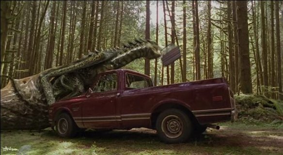 The wyvern in question is a surprisingly well-produced CGI giant lizard with big, flappy wings. It looks mean, it looks dangerous, and it flies around eating things with a pleasing amount of gore (CGI and practical) thrown around. It’s good enough that from the off it’s frequently shown off in full frame for extended shots, and only occasionally will you be going “that looks a bit shit”. Other than it being a physiological impossibility you could really believe such a thing would wreck up someone’s day.