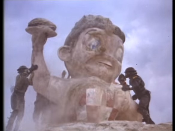 The reason this film isn’t that well known, even in niche nerd natterings, is two-fold. Firstly, it’s an action comedy, along the lines of Thunderdome mixed with Brazil. It has, throughout, solid gags and decent comedic performances. As you’d expect for a film about a collapsed America under theocratic dictatorship, it’s mostly gallows humour, but the two principle actors (Wayne Crawford and Zach Galligan) have respectable comedic resumes for a reason. The rest of the cast is also either leaning in to things just enough to give you some giggles or playing it absolutely straight to give you even more. Not bad things in and of themselves, but you don’t expect a film to start with a riff off of the Blues Brothers opening scenes and then end with the populace rising up and eating it’s oppressor.