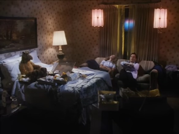 However, they aren’t jokes. They are a constant, unended, cry for help into an uncaring void. Not only is there no laugh track there is no laughter, as director Dick Lowry decided that everyone should play their characters as straight as a die. ALF quips at the people studying him and they find it annoying, he quips at the people helping him and they find it confusing, he quips at the people trying to control him and they look down on him even further, and he visibly shrinks each time. His pain grows as each witticism dies a death.